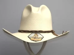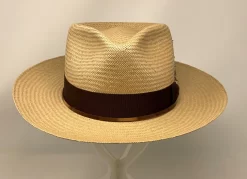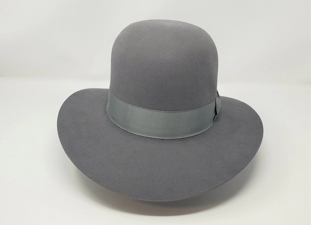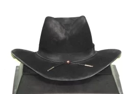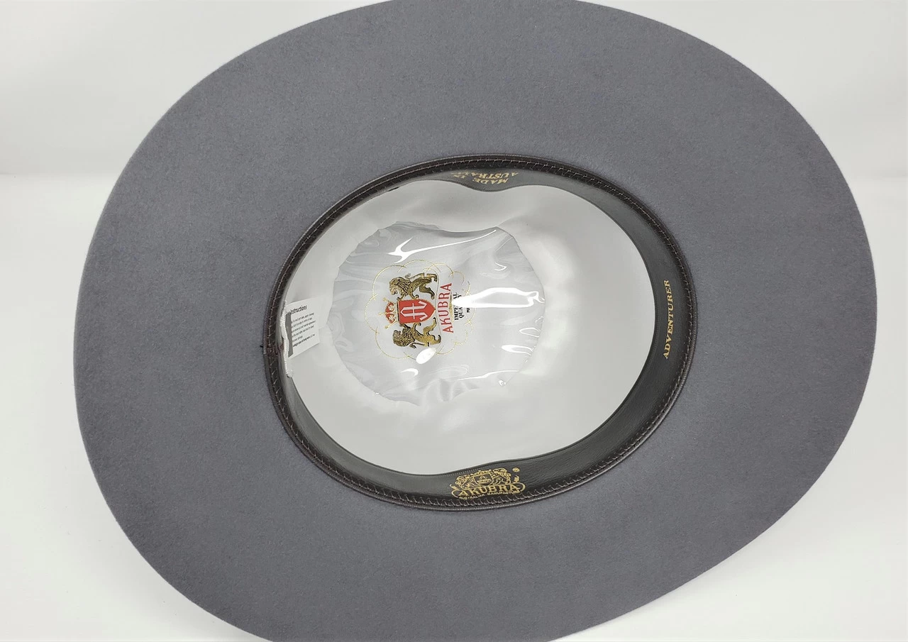 The Adventurer is designed for those who like to bash their hats to their own style. Made in Australia Akubra’s Adventurer has the general dimensional shape and style as the fedora worn by Indiana Jones in the “Indiana Jones” movies. The open crown is 5½ inches, the raw edge brim is 3â…› inches on the front and back, 2¾ inches on the sides. Constructed Imperial Quality fur felt the Adventurer is finished with a matching 1½ inch grosgrain ribbon band full satin lined and a reeded roan leather sweatband.