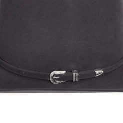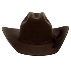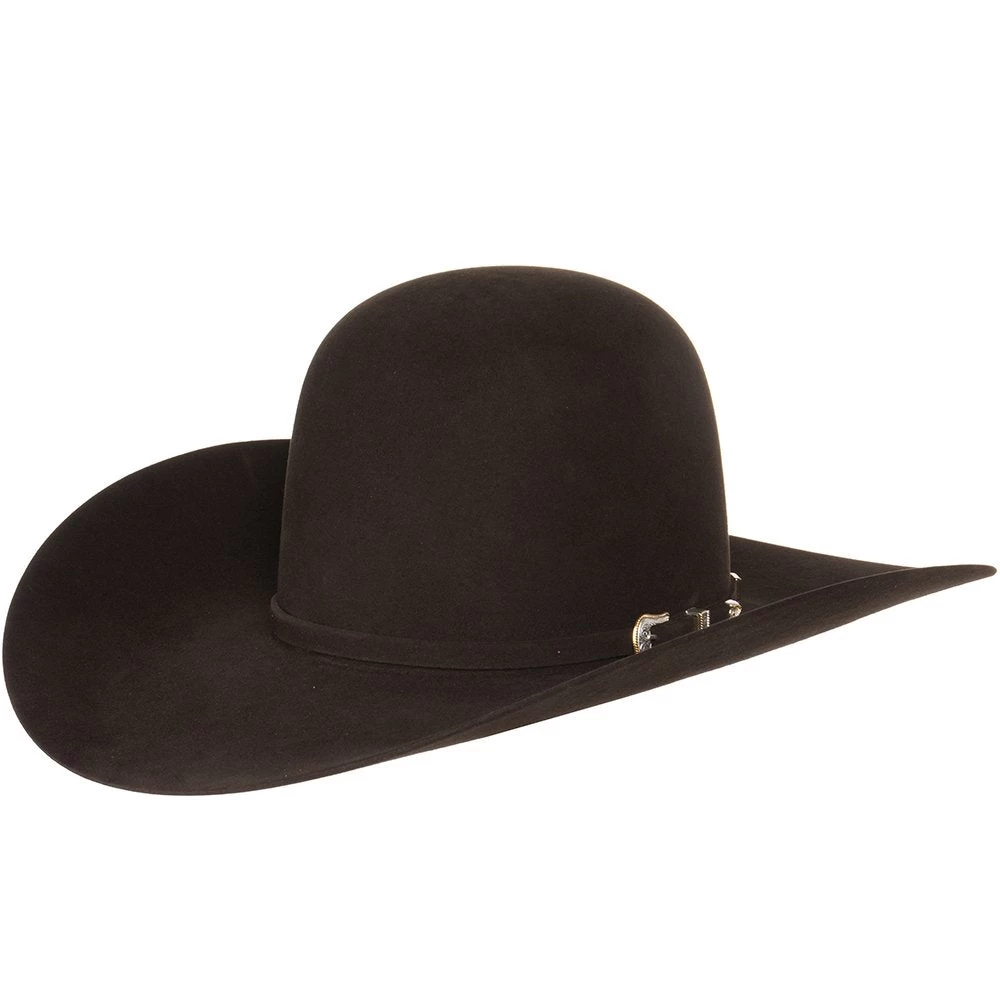 Ride all winter with this American Hat Co 10X Chocolate Open Crown Felt Cowboy Hat. This 10X quality chocolate felt features 4-1/2″ brim, open crown, matching hat band with silver buckle set, and leather sweatband. Add your favorite crease and make it your own!