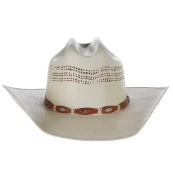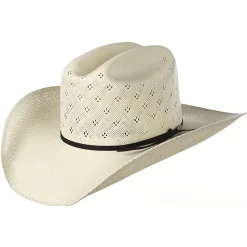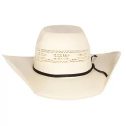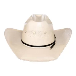 This American 15 Star Tan Straw Cowboy Hat is beautiful with any crease. It is open crown, has a long oval profile, and a 4-1/2″ Brim.