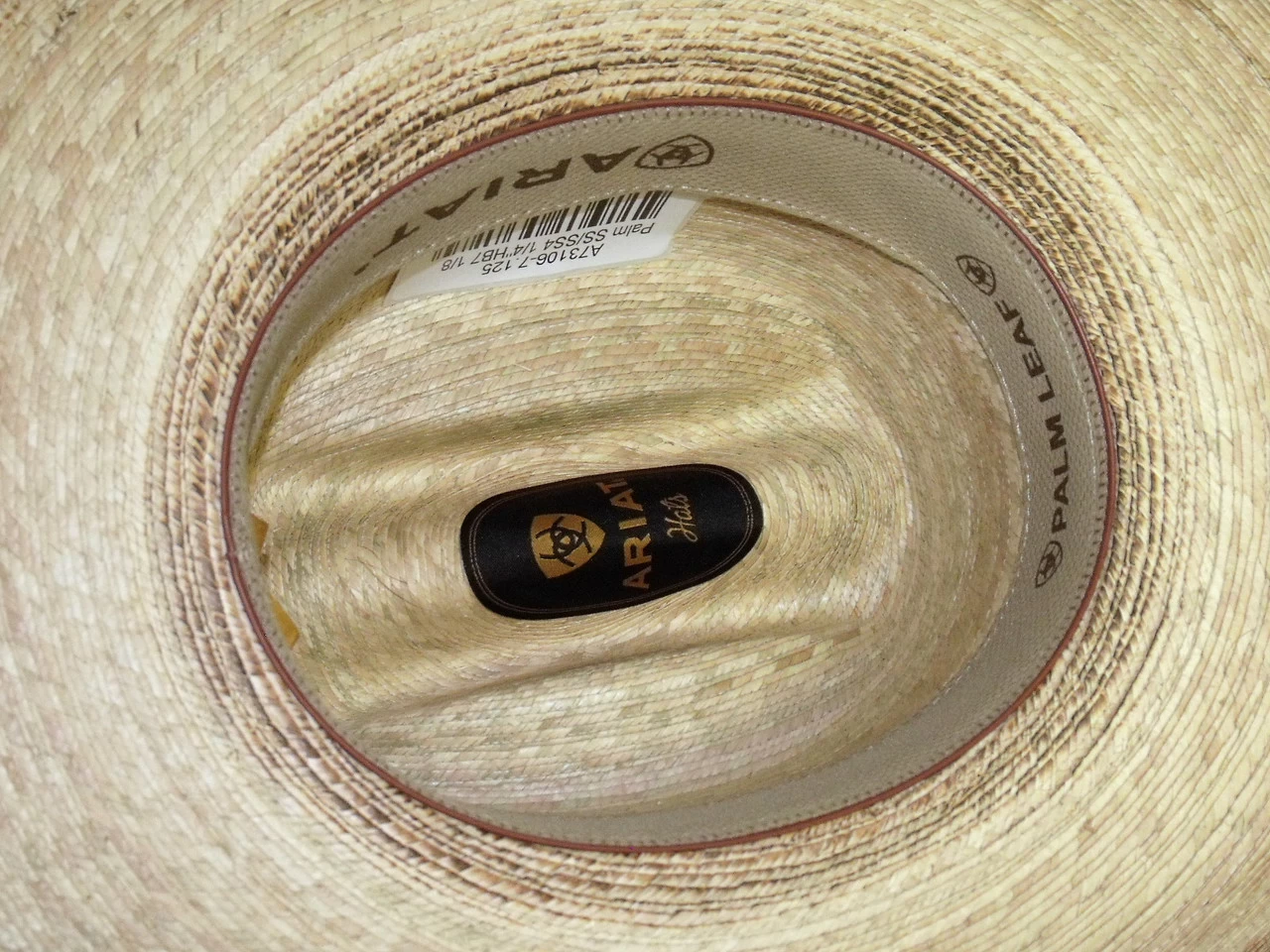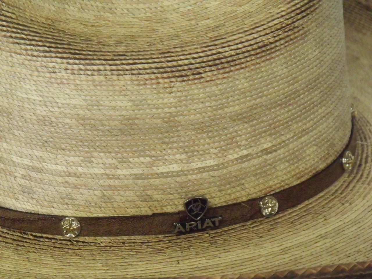 The A73106 is another great looking hat from the Ariat hat collection. Made of fired Mexican palm it has a 4 1/4″ cattleman crown and 4 1/4″ brim. It features a brown faux leather band with Ariat pin and star conchos and a comfortable moisture wicking sweatband.