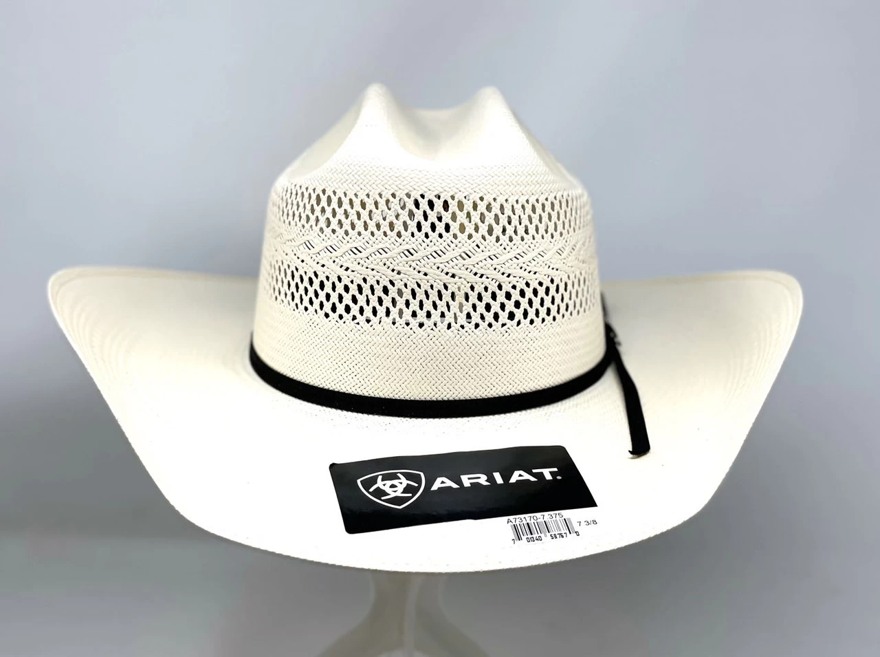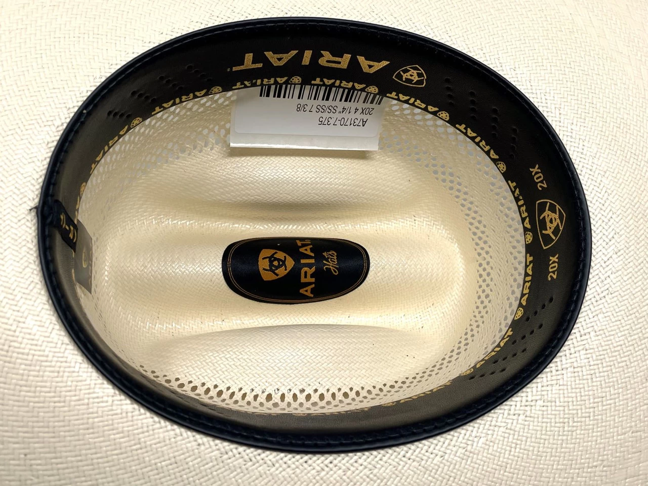 The Ariat A73170 is a 20X Shantung straw hat with a 4 1/4″ crown and a 4 1/4″ brim. Features include a 2-ply ribbon band with an Ariat pin, all-around ventilation and a genuine goat leather sweatband.