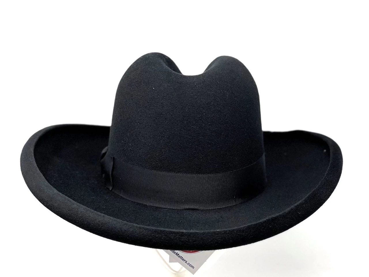 Made in the USA the Clayton is a classic Gus style hat from Bailey’s Frontier Collection. Constructed of a 4X quality fur blend (95% wool, 5% angora rabbit fur) it has a 4 1/4″ pencil rolled brim an a 4″ (front) and 5 1/2″ (back) crown. Features include a leather sweatband and full satin lining.