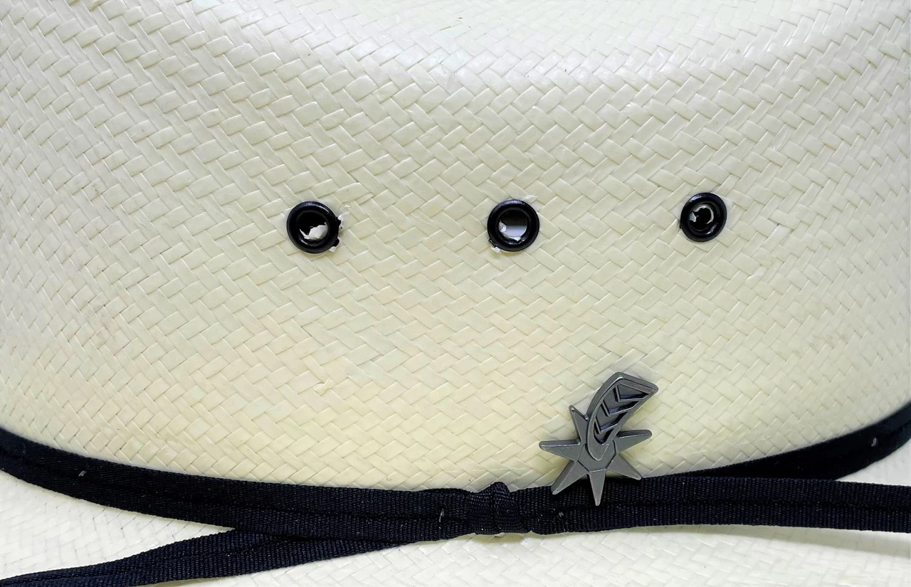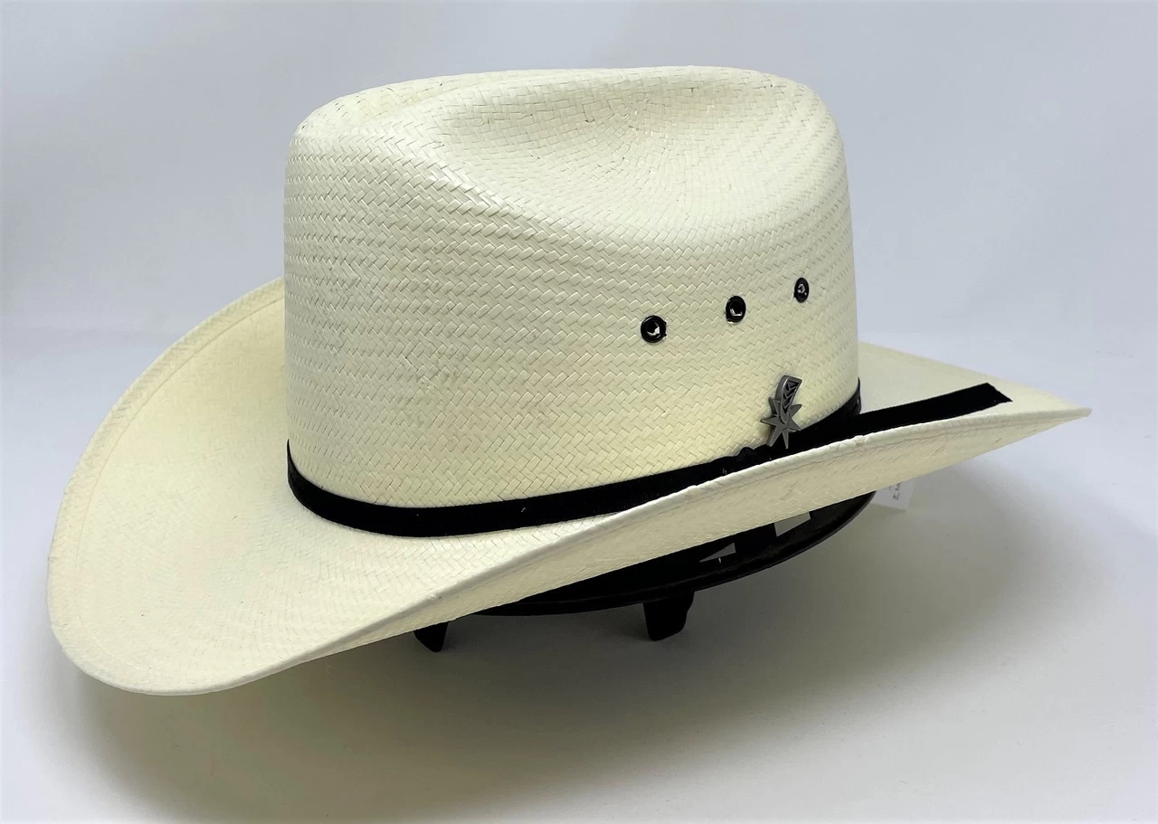 Made in the USA by Bailey the Guthrie is a classic design. Constructed of 7X Shantung Panama straw it has a 4″ stockman crown and 3 1/8″ brim. Features include eyelets, a Dri-Lex® sweatband and black grosgrain ribbon band and a spur pin.