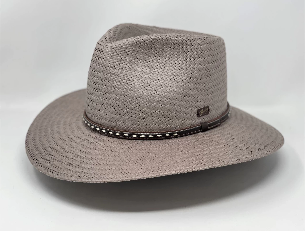 The Ore is a fedora from Baileys WIND RIVER® collection. It is made in USA using the Raindura process which weaves a thermosetting yarn into the shantung straw. This results in a shape retentive straw hat that will return to its shape even after a good rain. The Ore has a 4 1/2″ teardrop crown and a 3 1/4″ sloping brim. Features include a leather band with woven stitch detail and a Dri-Lex sweatband.