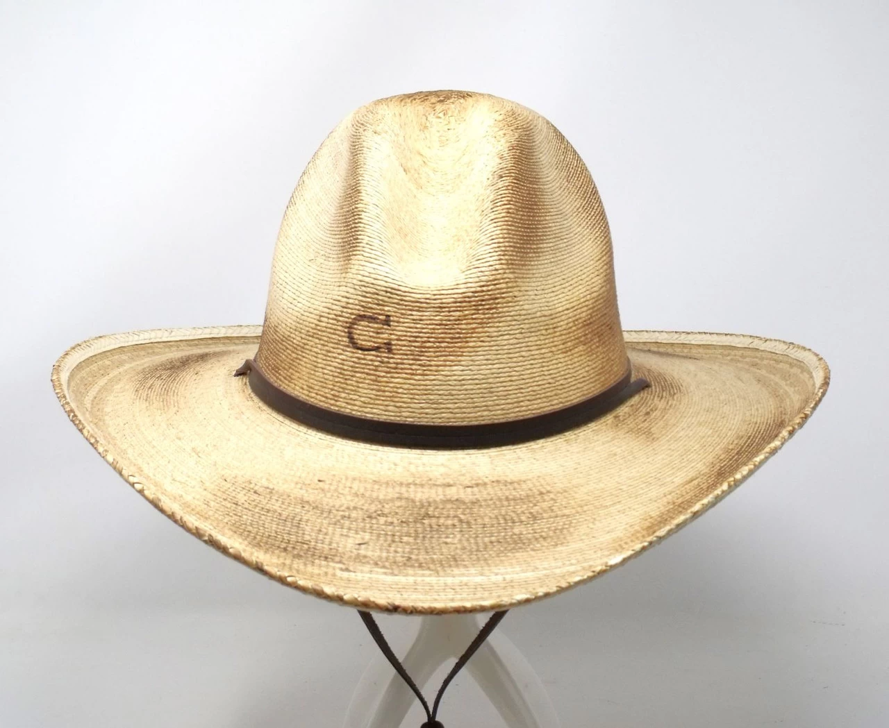The Ride or Die is from Charlie 1 Horse’s Wild West Collection. Constructed of soft, burnt, natural palm it has a 4″ brim and a Gus style crown which measures approximately 4″ in front and 5 1/2″ in back. Features include the horseshoe C brand, leather band, stampede/chin strap and a Dri-Lex sweatband.