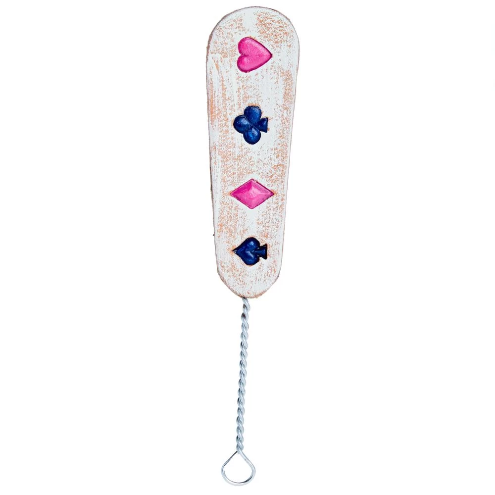 Add this new tooled leather McIntire Saddlery Navy and Pink Playing Cards Hat Pick to your hat for a fun and unique look!