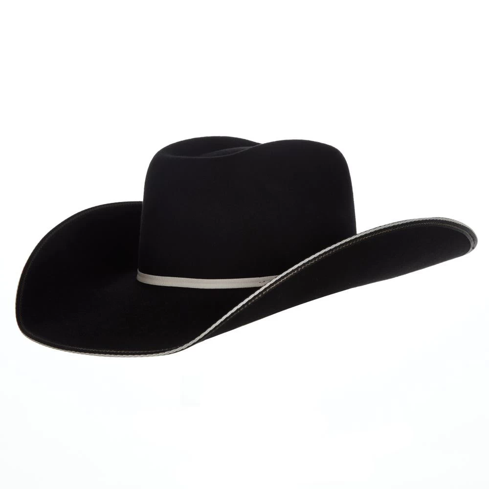 Apart of the Tuff Hedeman Collection with Resistol, this 4X Black Snake Eyes Felt Hat looks sharp with its bound-edge and cream accents!