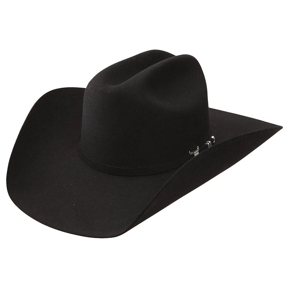 Resistol USTRC 6X Black Felt Cowboy Hat was designed with the team roper in mind. The durable 6X felt utilizes a Dri-Lex sweat band to make it more breathable, and, more importantly, helps the hat conform and stay on a roper’s head as he or she is going down the arena. Each hat is equipped with the well-known USTRC steerhead logo pin on the hat band. This black felt hat features a 4-1/4″ brim, matching hat band, and cattleman crease.