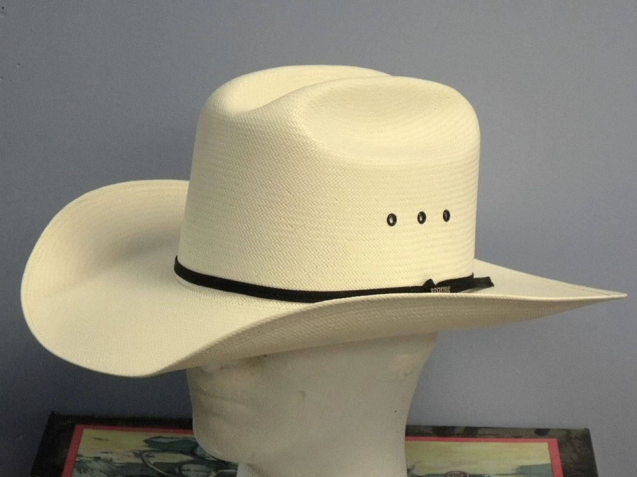 Made in the USA the All Around is from Resistol’s Classic collection. Constructed of 10X Genuine Shantung Panama straw it has a 4″ brim and a 4 3/8″ long oval cattleman crown. Features include a 2 ply black ribbon band with Resistol pin, Wipe n’ Wear Vinylcote and a Dri-Lex sweatband.