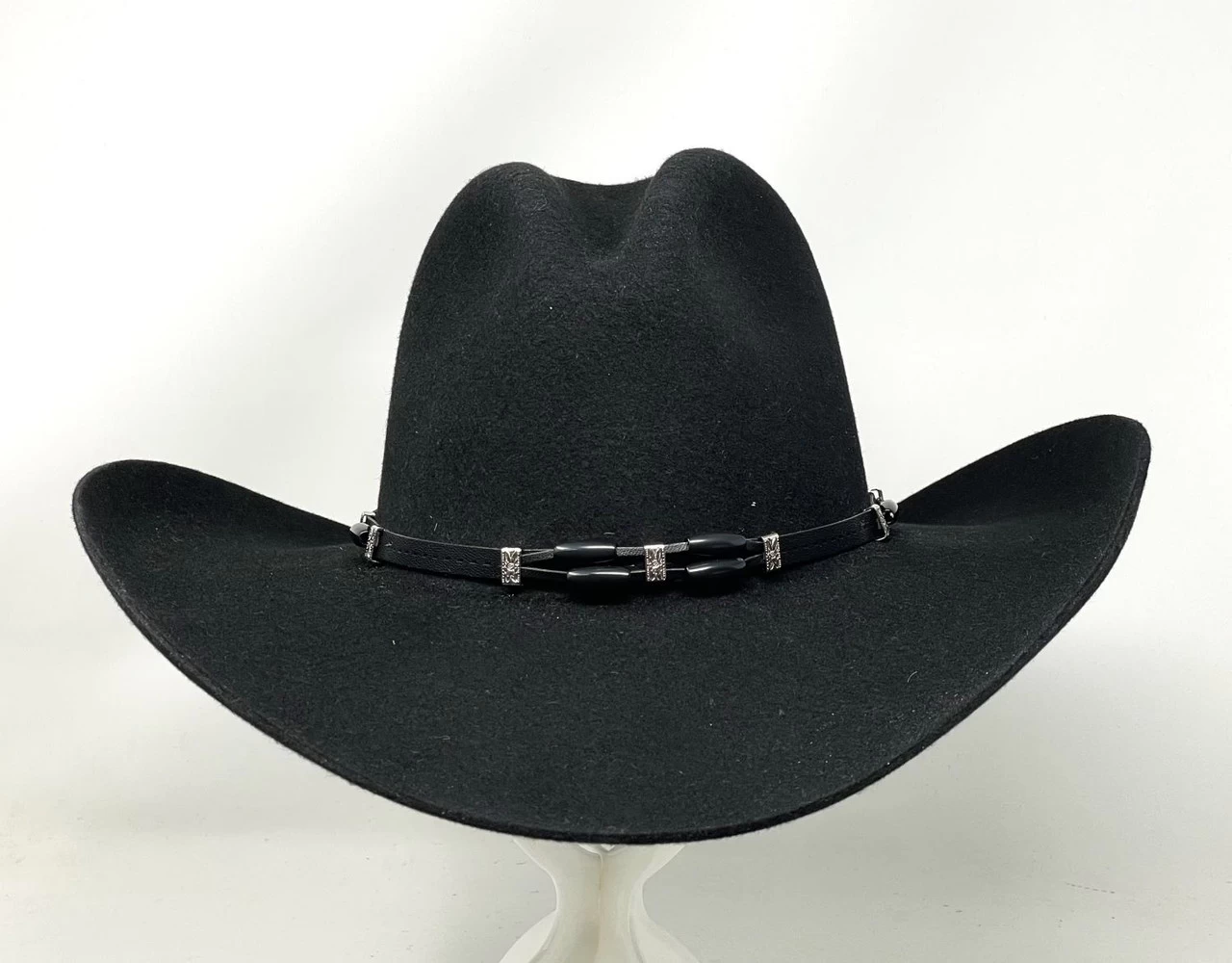 Made in the USA the Cisco is a popular Gus style hat from Resistol. Constructed of premium 3X wool it has a 4″ x 5″ regular oval Gus crown and 4 3/8″ brim. Features include a leather band with silver metal and black barrel bead accents, bonded leather sweatband and full lining.Â