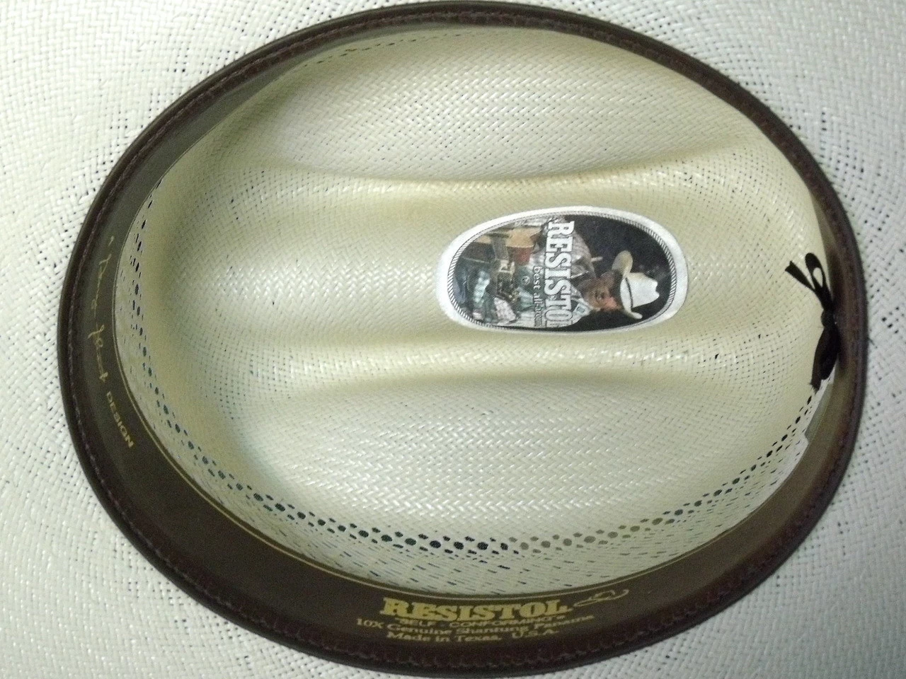 Made in the USA of genuine 10X Shantung Panama straw the Colt is from Resistol’s George Strait collection. It has a 4 1/4″ (approx.) regular oval crown and a 4 1/4″ brim. Features include narrow 3/8″ light brown band, cooling all around venting and a leather sweatband.