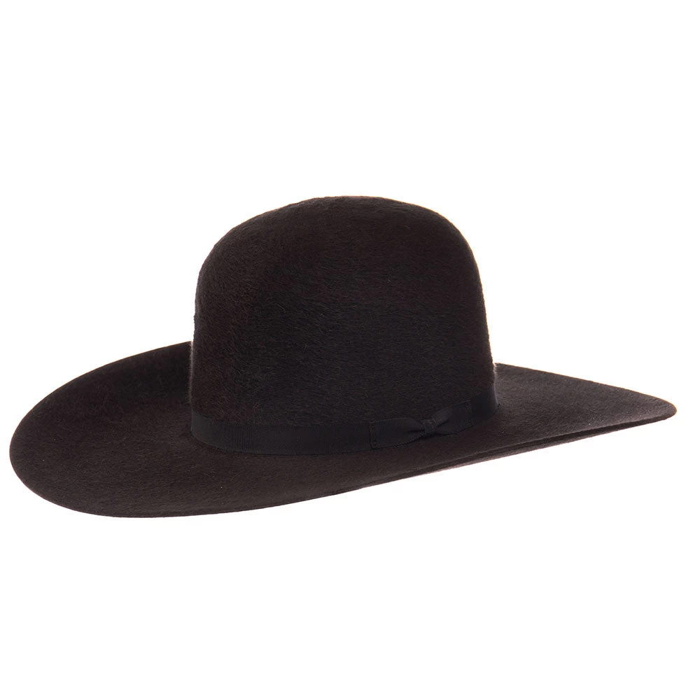 This Rodeo King 10X Charcoal Grizzly Hat offers a bold, wild look. It features a tough charcoal color, a 4 1/2″ brim, and a matching ribbon band. This hat comes open crown, but feel free to choose a crease and we can crease it for you.
