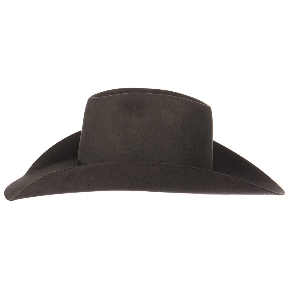 This Rodeo King 7x Charcoal Hat offers a bold, wild look. It features a smooth charcoal color, a 4 1/2″ brim, and a black ribbon band. This hat comes open crown, but feel free to choose a crease and we can crease it for you.