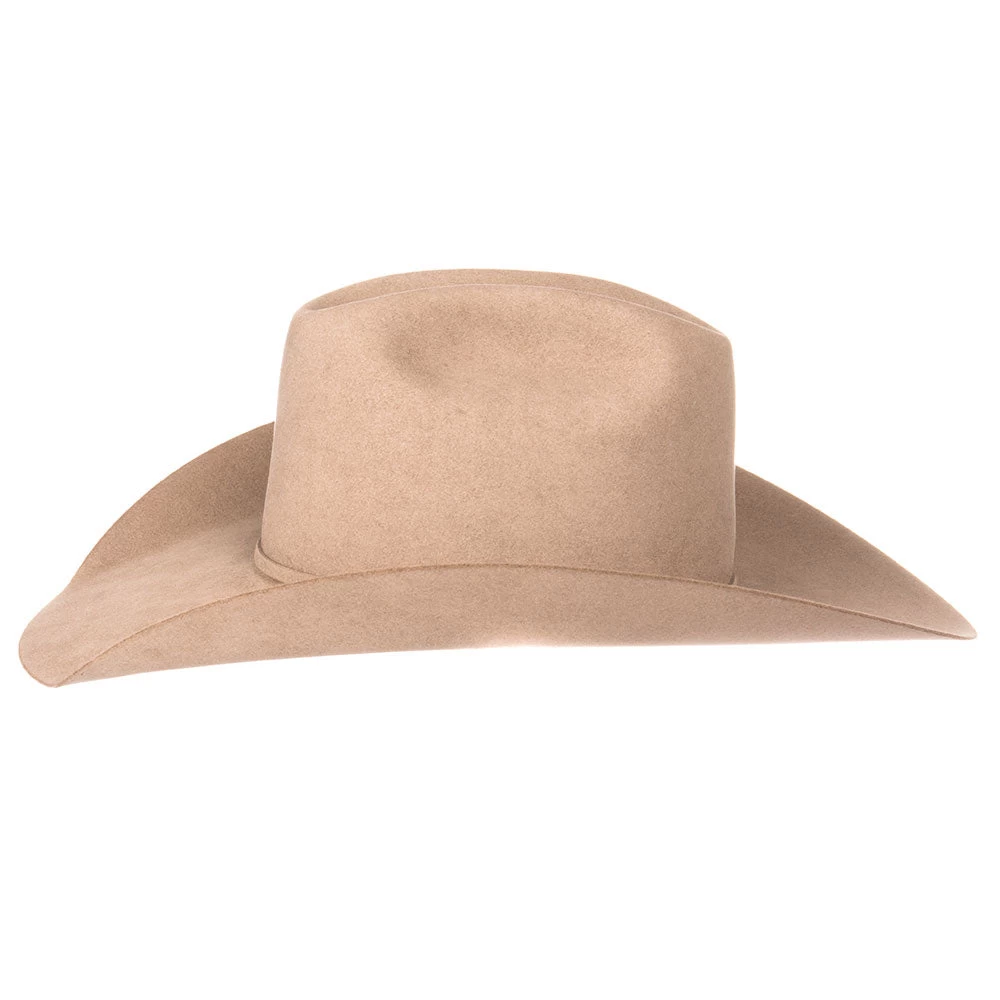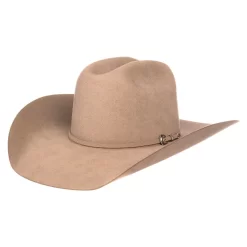 This Rodeo King 100X Natural Hat offers a bold, modern look. It features a sleek natural color, a 4 1/4″ brim, and a matching band with a brass buckle. This hat comes open crown, but feel free to choose a crease and we can crease it for you.