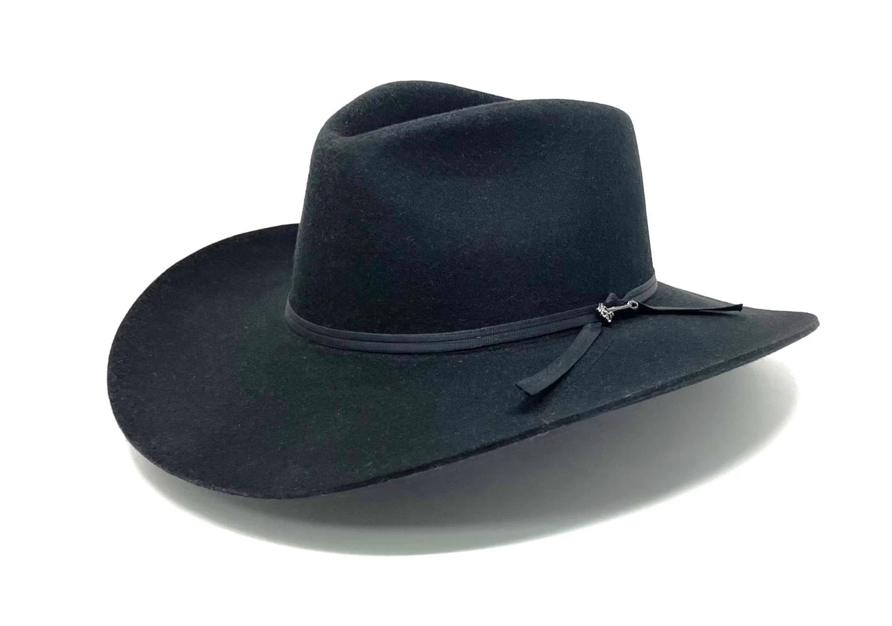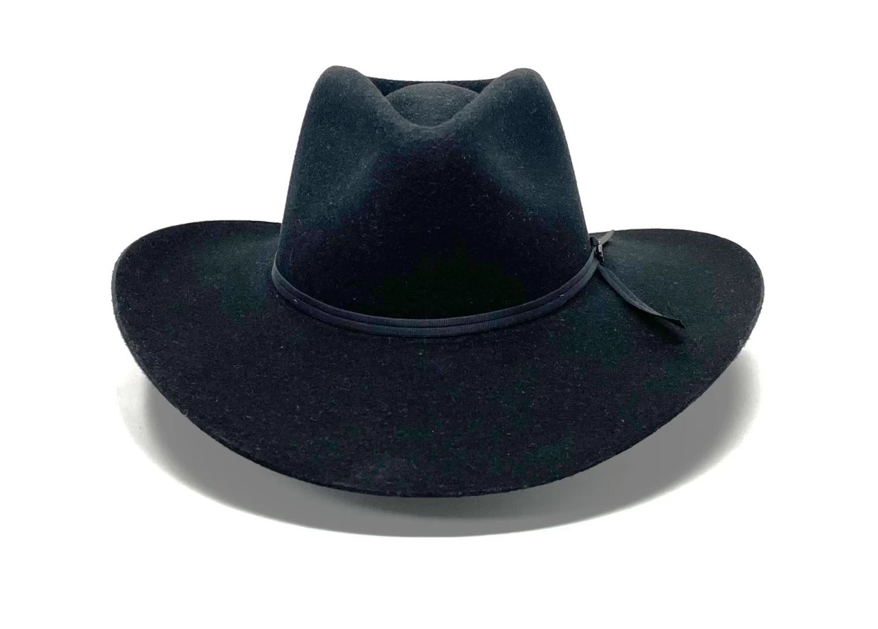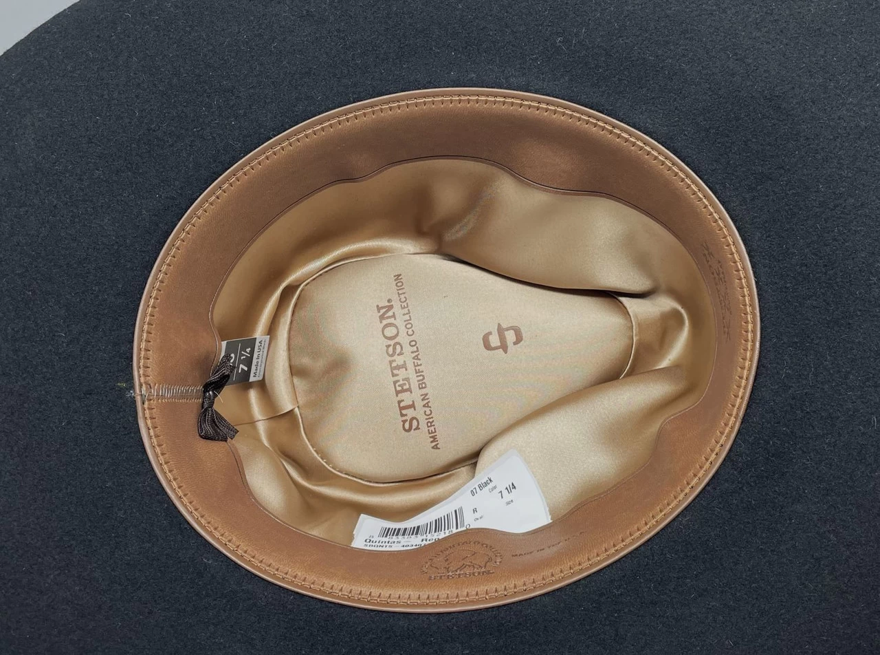 The Quintas by Stetson is perfect for any outdoor activity. It is made of durable, water resistant, 4X Buffalo wool felt and has a 3 1/2″ brim and 4″ (approx. at front crease) pinch front crown. Features include a doubled ribbon band, Stetson pin, leather sweatband and full satin lining.Â