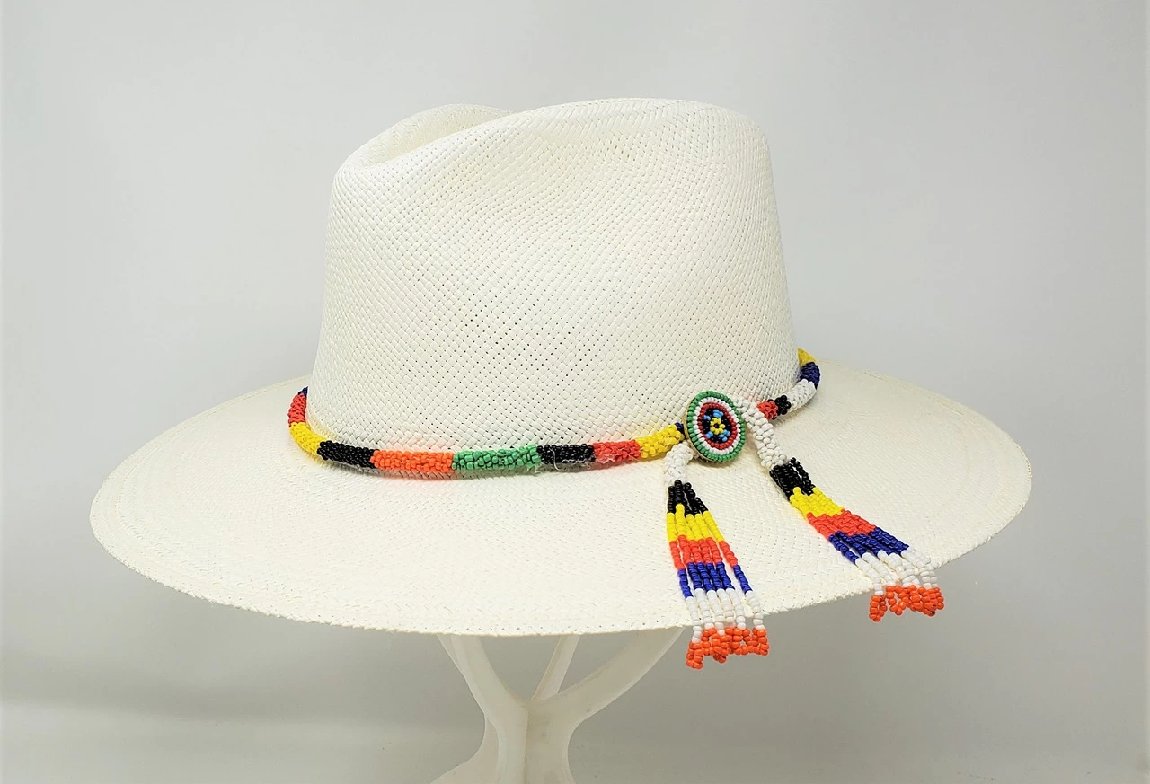 Features include a multi-color, hand beaded beaded band with matching concho, and a moisture-wicking Dri-Lex sweatband.