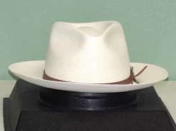 Stetsons Brentwood is a lightweight vented Shantung straw suitable for all kinds of everyday casual uses. It features a 3″ brim, 4″ Gambler style crown, leather hatband and a soft and comfortable cloth sweatband. Please note that the venting on these hats has a tendency to be wavy and uneven.