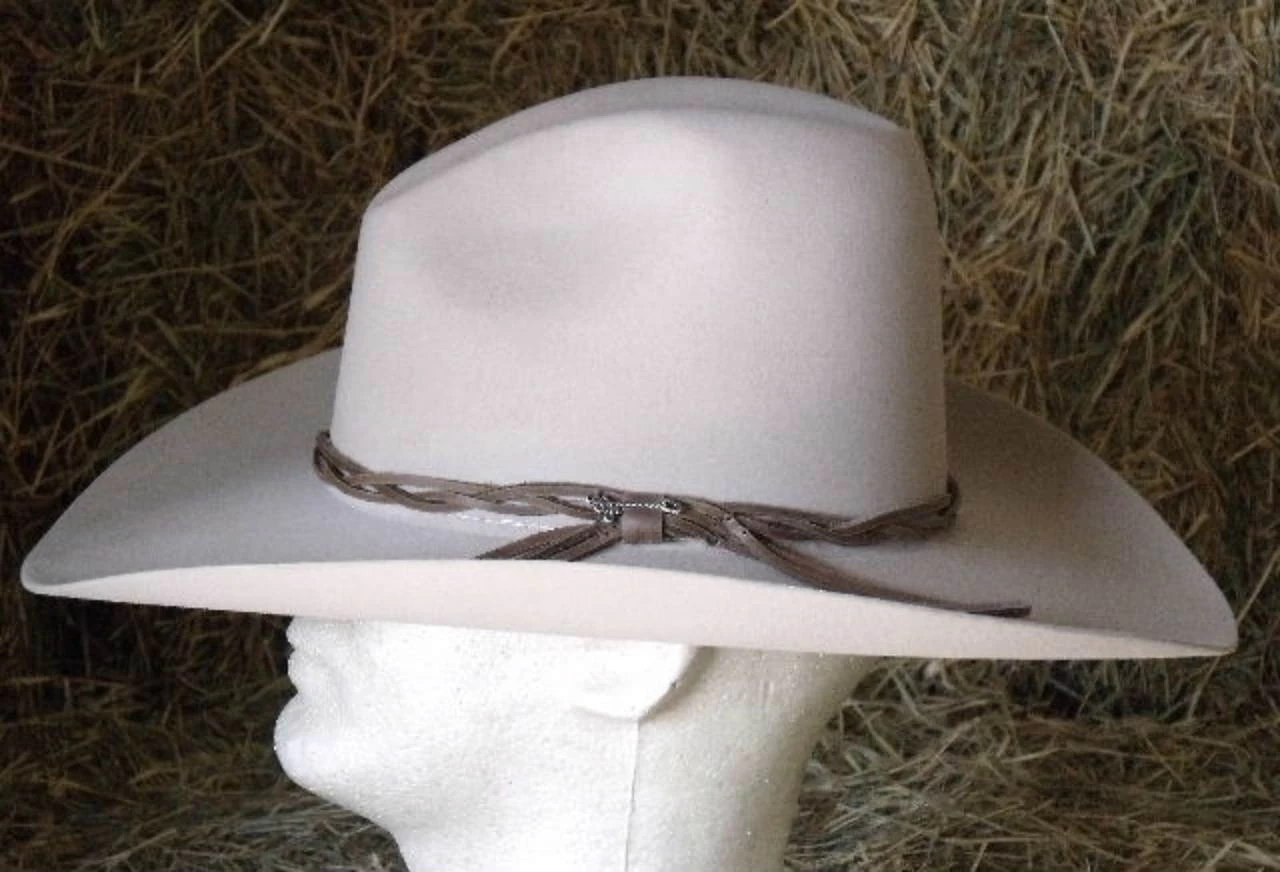 A great old style hat worn by Gus McCrea on Lonesome Dove. made in the USA by Stetson. The “Gus” is a regular oval and is available in Black and Silverbelly color. It is made of 6X fur felt and has a 4″ brim featuring a braided leather hatband. The crown measures approximately 5-1/2″ in back and 4″ in front.