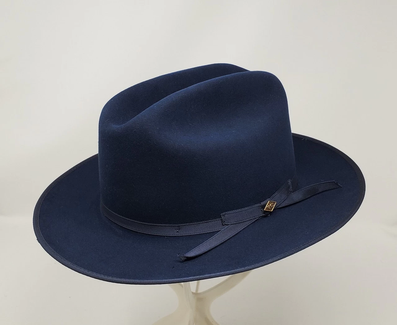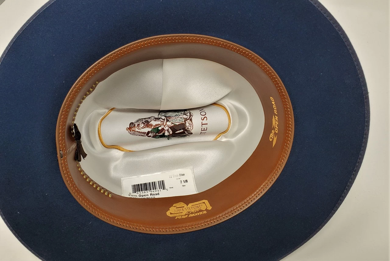 Stetson’s Pure Open Road is made in the USA of soft and luxurious pure beaver fur. Ideal for formal and casual wear it has a 2 3/4″ bound edge brim and 4 1/4″ crown. Features include a grosgrain ribbon band, 1865 pin, full satin lining and a premier roan sweatband with gold lacing.