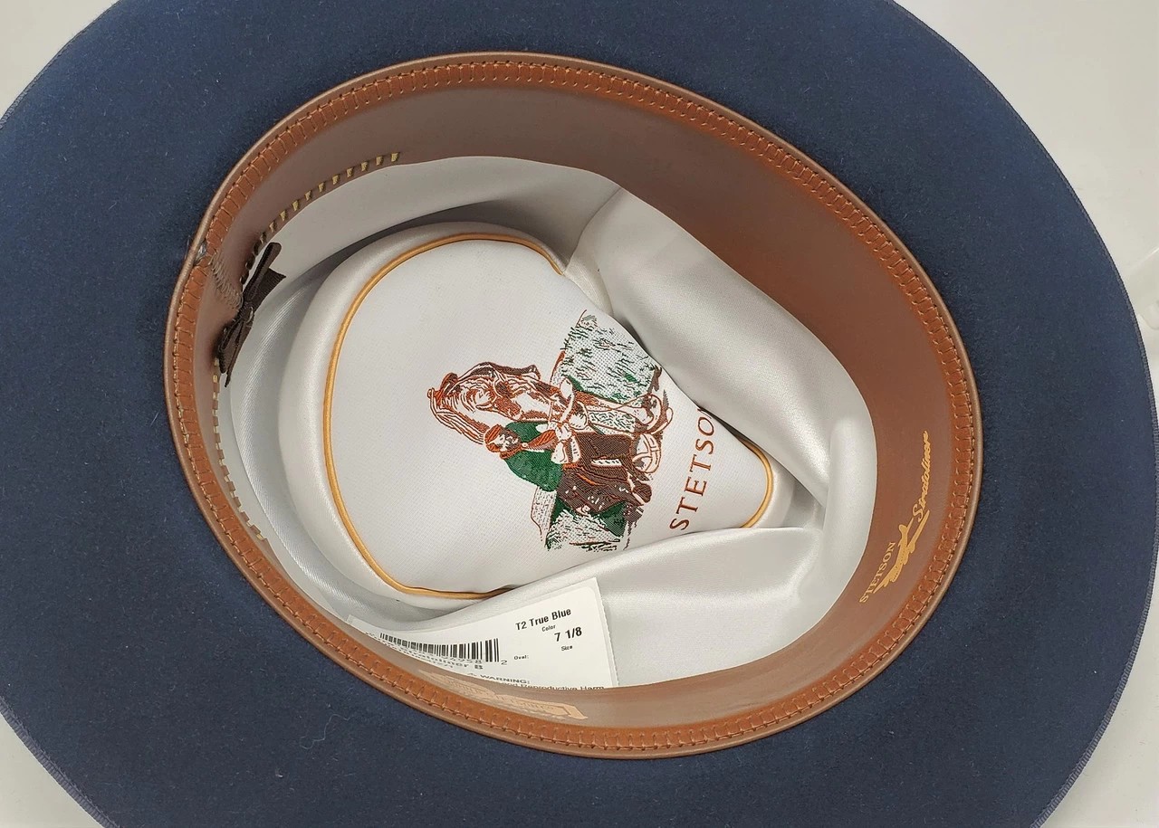 Stetson’s Pure Stratoliner is made in the USA of soft and luxurious pure beaver fur. Ideal for formal and casual wear it has a 2 1/2″ bound edge brim and 4 1/2″ crown. Features include a grosgrain ribbon band, 1865 pin, full satin lining and a premier roan sweatband with gold lacing.