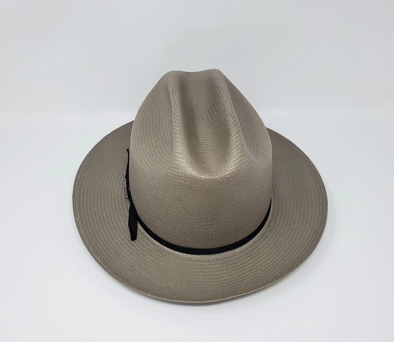 Made in the USAÂ the Stetson Open Road is constructed of Shantung straw and has a 4″ (approx.)regular oval crown and 2 3/4″ brim. Features include a sheepskin sweatband and grosgrain ribbon band with Stetson pin .