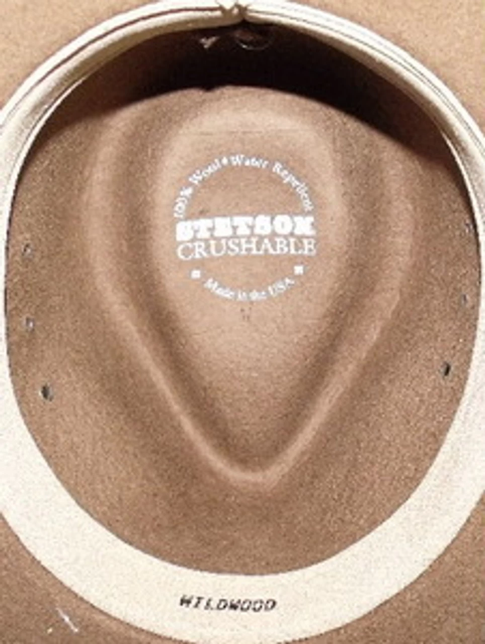The Wildwood is a soft crushable hat from Stetson’s Outdoor collection. Made in the U.S.A. it is water repellant and has a 4 1/8″ pinch front crown and 3 1/4″ brim. Features include a Dri-Lex sweatband, eyelets and decorative leather hatband.