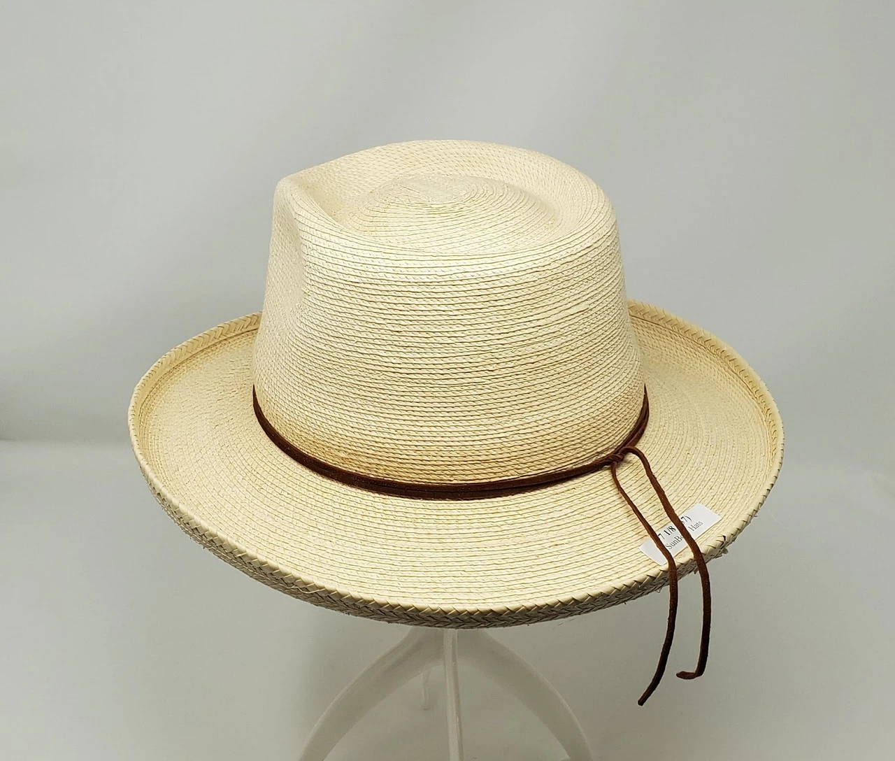 The Outlaw is made by SunBody of fine (10 – 12 strands/inch) Guatemalan palm . It has a 3″ pencil rolled brim and a 4 1/2″ (approx.) outlaw creased crown. Features include suede lace band, comfortable fabric sweatband and a UPF 50+ rating.